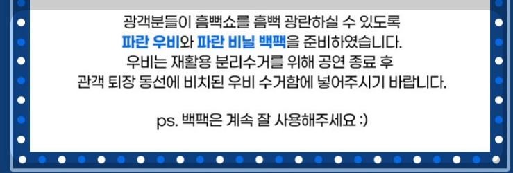 공연장 내부에는 주류 반입 및 섭취가 불가합니다.