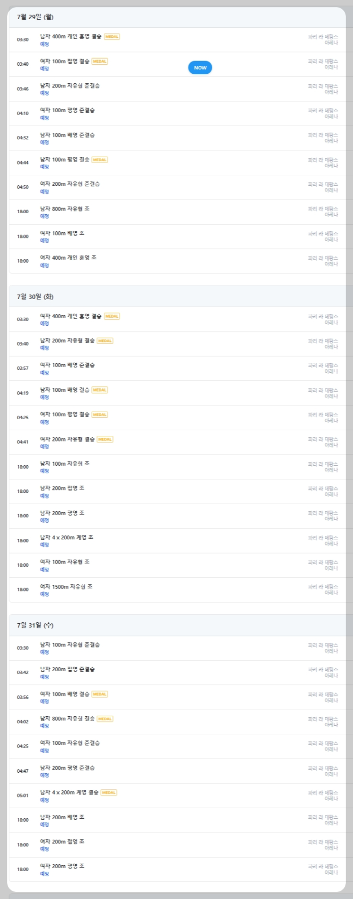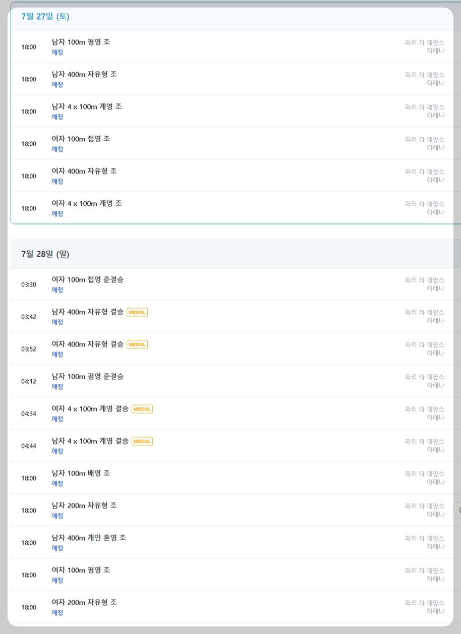 ▶2024 파리 올림픽 수영 경기 일정